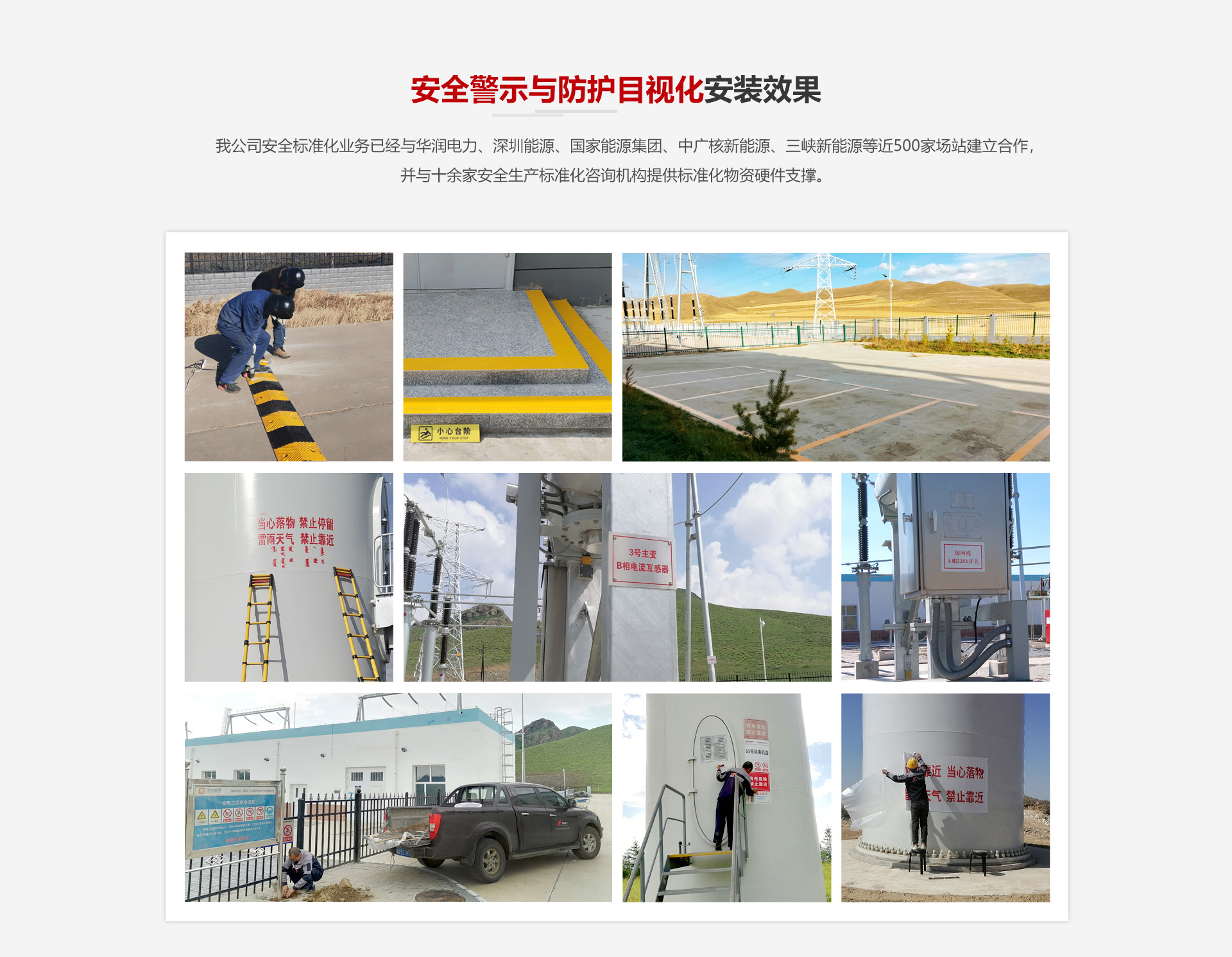 我公司安全标准化业务已经与国家能源集团、中广核新能源、三峡新能源等近500家场站建立合作,