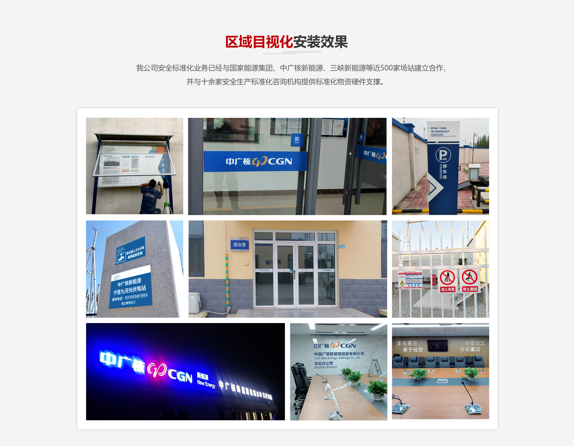 我公司安全标准化业务已经与国家能源集团、中广核新能源、三峡新能源等近500家场站建立合作,并与十余家安全生产标准化咨询机构提供标准化物资硬件支撑。