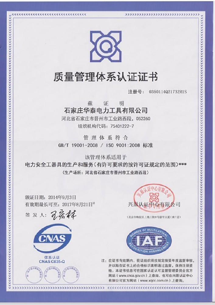 石家庄华泰电力工具有限公司(原晋州市电力工具有限公司)成立于2003年,是集设计、生产、研发、销售、服务为一体的电力安全工器具高新技术企业、专精特新中小企业、河北工业企业研发机构A级企业。